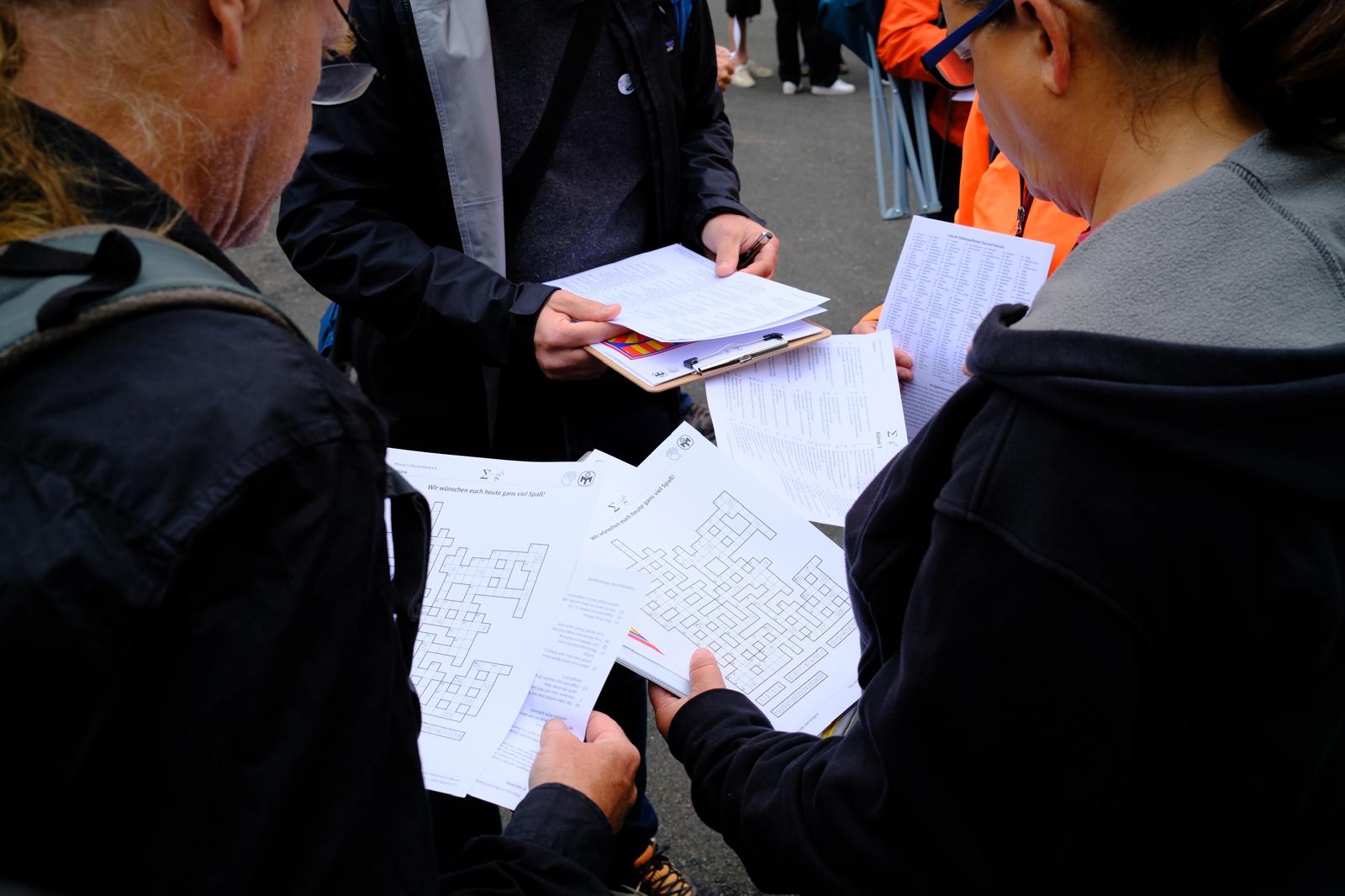 Beim Blick auf die Uhr werden wir etwas unsicher. Wie viele Rätsel mögen jetzt noch kommen? Wenn der Zeitplan so ist, dass viele Teams das letzte Rätsel finden sollen, liegen wir nicht so gut in der Zeit. Wie viele Lösungen werden wir bis zum Abschluss wohl noch finden?